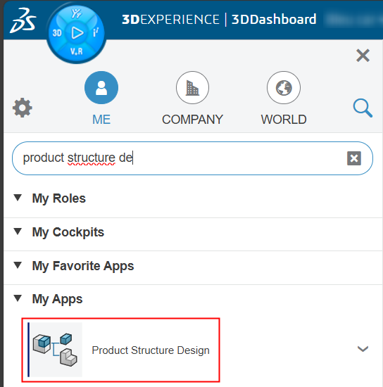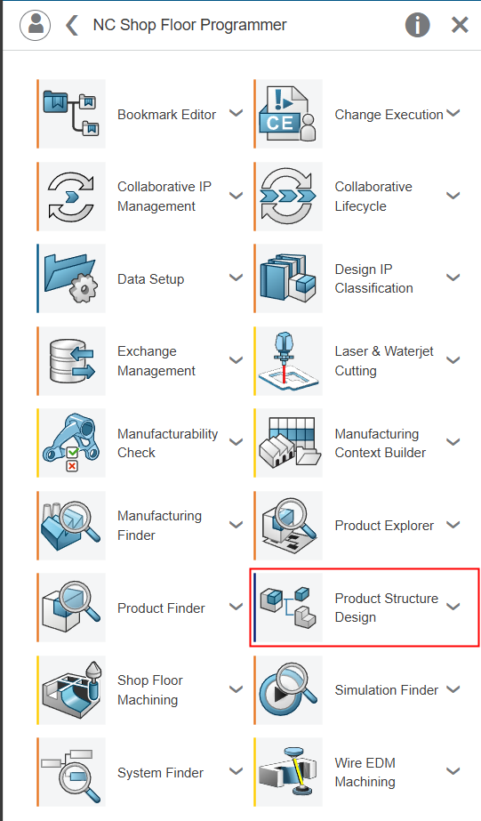 - Start Product Structure Design vanuit het Compass, door op de app te klikken: