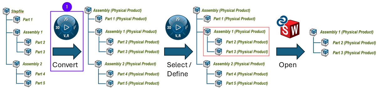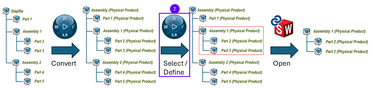 Het proces begint met het importeren van de stepfile via de geïnstalleerde native app Product Structure Design: