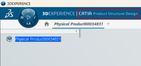 - De app Product Structure Design opent, wat zichtbaar is in de top bar: