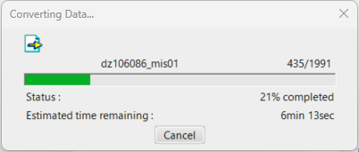 - Er wordt een laadvenster weergegeven met de geschatte tijd voor de import: