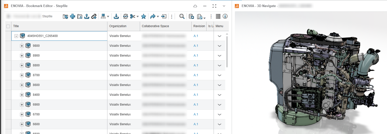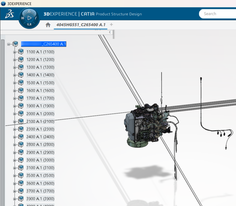 Eenmaal in 3DEXPERIENCE wordt de volledige structuur van het model inzichtelijk.