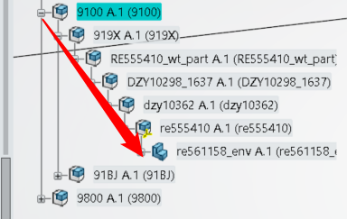 Nu kan de uitgekleedde structuur worden geopend in SOLIDWORKS: